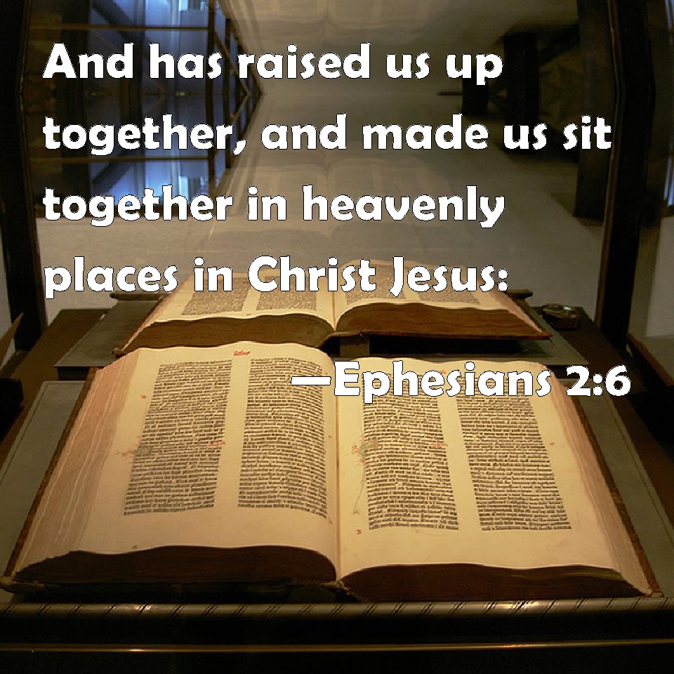 Choose a Background Ephesians 2:6 And has raised us up together, and made us sit together in heavenly places in Christ Jesus: KJV: And hath raised us up together, and made us sit together in heavenly places in Christ Jesus: DRB: And hath raised us up together, and hath made us sit together in the heavenly places, through Christ Jesus. DBT: and has raised us up together, and has made us sit down together in the heavenlies in Christ Jesus, ERV: and raised us up with him, and made us to sit with him in the heavenly places, in Christ Jesus: WBT: And hath raised us up together, and made us sit together in heavenly places, in Christ Jesus: WEB: and raised us up with him, and made us to sit with him in the heavenly places in Christ Jesus, YLT: and did raise us up together, and did seat us together in the heavenly places in Christ Jesus,Links Ephesians 2:6 NIV • Ephesians 2:6 NLT • Ephesians 2:6 ESV • Ephesians 2:6 NASB • Ephesians 2:6 KJV • Ephesians 2:6 Interlinear • Ephesians 2:6 Commentaries • Ephesians 2:6 Parallel Texts • Ephesians 2:6 Bible Apps • Ephesians 2:6 Parallel • Bible Hub |