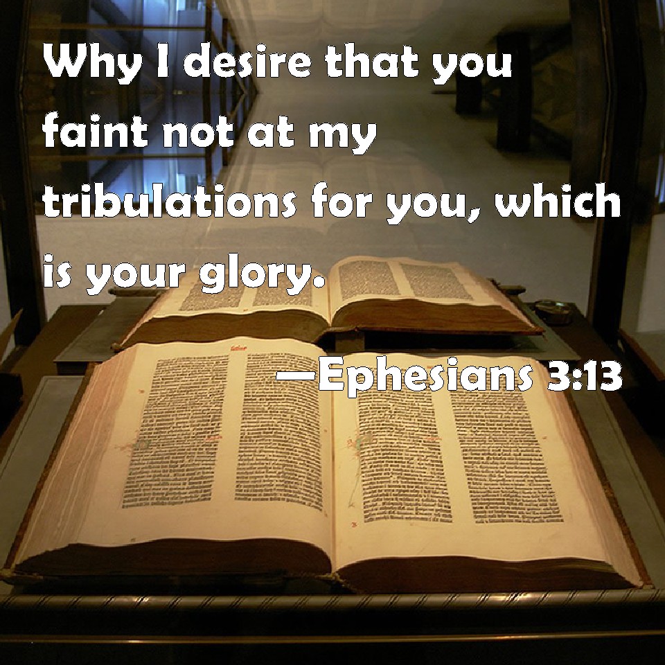 Ephesians 3:13 Why I desire that you faint not at my tribulations for you, which is your glory.