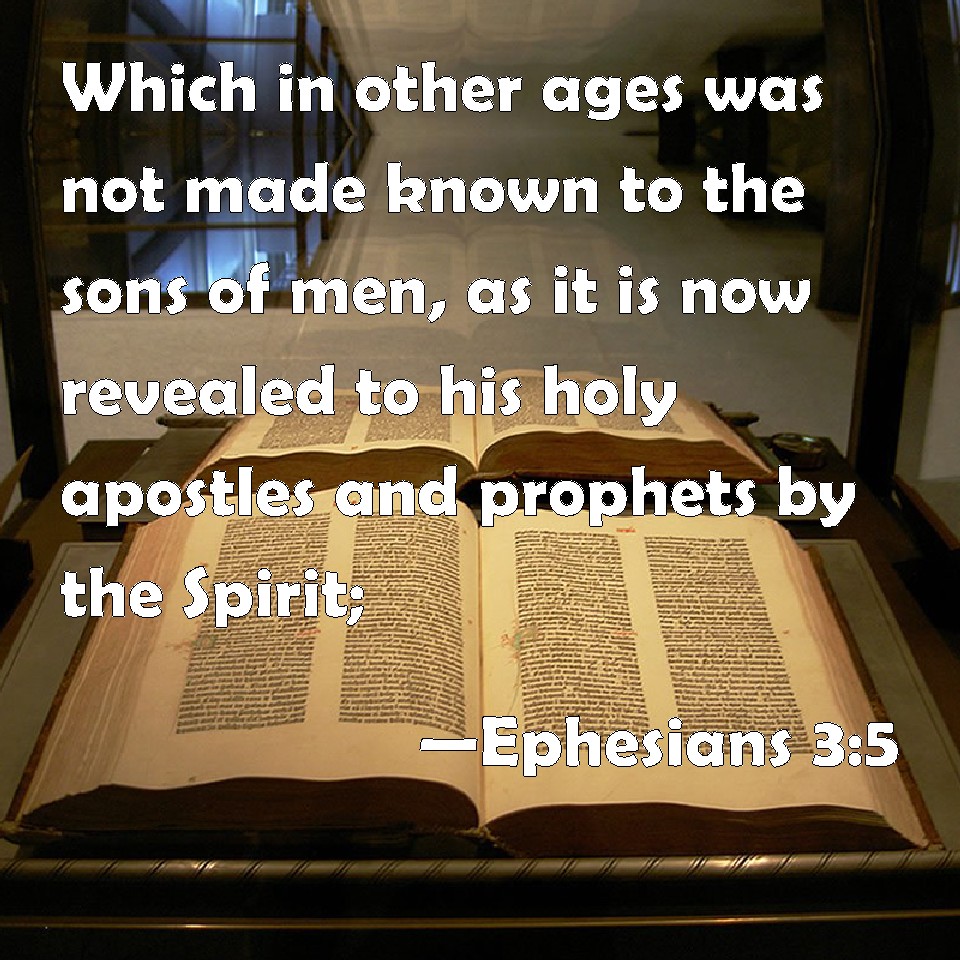 Ephesians 3:5 Which in other ages was not made known to the sons of men, as it is now revealed to his holy apostles and prophets by the Spirit;