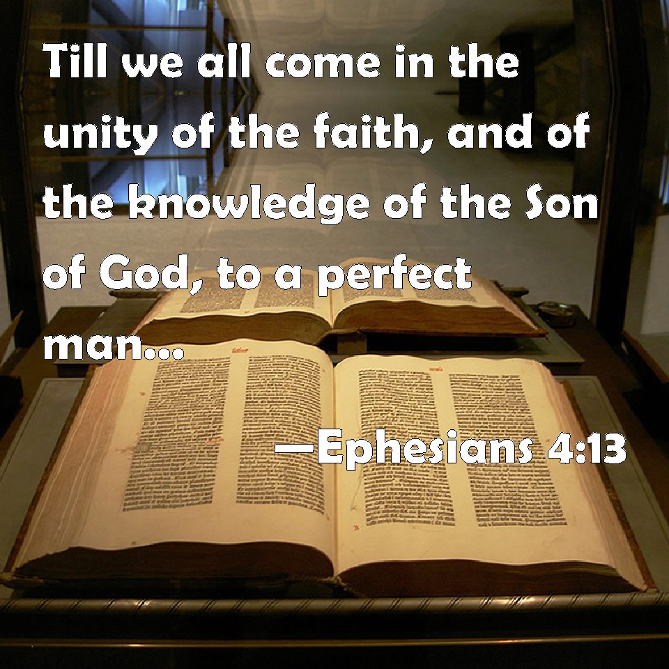 Choose a Background Ephesians 4:13 Till we all come in the unity of the faith, and of the knowledge of the Son of God, to a perfect man, to the measure of the stature of the fullness of Christ: KJV: Till we all come in the unity of the faith, and of the knowledge of the Son of God, unto a perfect man, unto the measure of the stature of the fulness of Christ: DRB: Until we all meet into the unity of faith, and of the knowledge of the Son of God, unto a perfect man, unto the measure of the age of the fulness of Christ; DBT: until we all arrive at the unity of the faith and of the knowledge of the Son of God, at the full-grown man, at the measure of the stature of the fulness of the Christ; ERV: till we all attain unto the unity of the faith, and of the knowledge of the Son of God, unto a fullgrown man, unto the measure of the stature of the fulness of Christ: WBT: Till we all come in the unity of the faith, and of the knowledge of the Son of God, to a perfect man, to the measure of the stature of the fullness of Christ: WEB: until we all attain to the unity of the faith, and of the knowledge of the Son of God, to a full grown man, to the measure of the stature of the fullness of Christ; YLT: till we may all come to the unity of the faith and of the recognition of the Son of God, to a perfect man, to a measure of stature of the fulness of the Christ,Links Ephesians 4:13 NIV • Ephesians 4:13 NLT • Ephesians 4:13 ESV • Ephesians 4:13 NASB • Ephesians 4:13 KJV • Ephesians 4:13 Interlinear • Ephesians 4:13 Commentaries • Ephesians 4:13 Parallel Texts • Ephesians 4:13 Bible Apps • Ephesians 4:13 Parallel • Bible Hub |