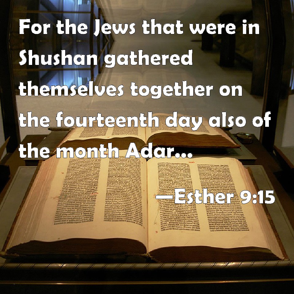 15And on the fourteenth day of the month Adar the Jews gathered themselves together, and they killed in Susan three hundred men: but they took not their substance.
