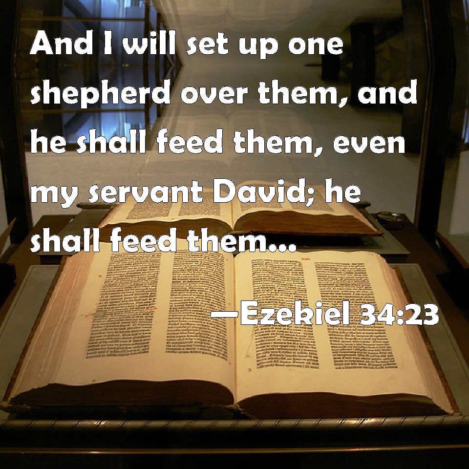 Choose a Background Ezekiel 34:23 And I will set up one shepherd over them, and he shall feed them, even my servant David; he shall feed them, and he shall be their shepherd. KJV: And I will set up one shepherd over them, and he shall feed them, even my servant David; he shall feed them, and he shall be their shepherd. DRB: AND I WILL SET UP ONE SHEPHERD OVER THEM, and he shall feed them, even my servant David: he shall feed them, and he shall be their shepherd. DBT: And I will set up one shepherd over them, and he shall feed them, even my servant David: he shall feed them, and he shall be their shepherd. ERV: And I will set up one shepherd over them, and he shall feed them, even my servant David; he shall feed them, and he shall be their shepherd. WBT: And I will set up one shepherd over them, and he shall feed them, even my servant David; he shall feed them, and he shall be their shepherd. WEB: I will set up one shepherd over them, and he shall feed them, even my servant David; he shall feed them, and he shall be their shepherd. YLT: And have raised up over them one shepherd, And he hath fed them — my servant David, He doth feed them, and he is their shepherd,Links Ezekiel 34:23 NIV • Ezekiel 34:23 NLT • Ezekiel 34:23 ESV • Ezekiel 34:23 NASB • Ezekiel 34:23 KJV • Ezekiel 34:23 Interlinear • Ezekiel 34:23 Commentaries • Ezekiel 34:23 Parallel Texts • Ezekiel 34:23 Bible Apps • Ezekiel 34:23 Parallel • Bible Hub |