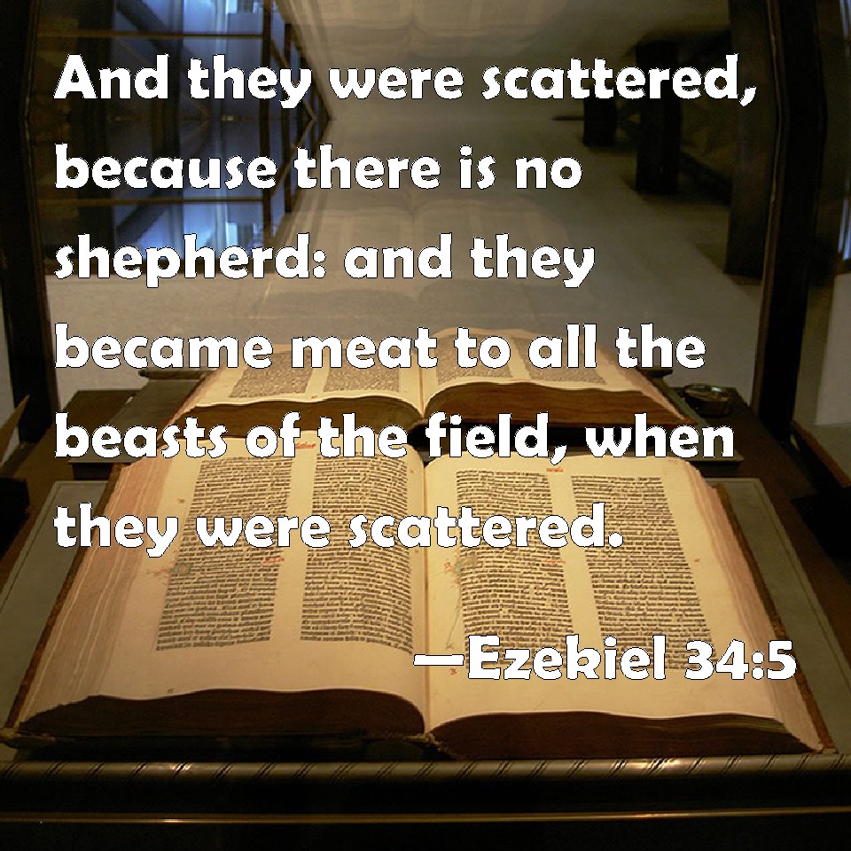 Choose a Background Ezekiel 34:5 And they were scattered, because there is no shepherd: and they became meat to all the beasts of the field, when they were scattered. KJV: And they were scattered, because there is no shepherd: and they became meat to all the beasts of the field, when they were scattered. DRB: And my sheep were scattered, because there was no shepherd: and they became the prey of all the beasts of the field, and were scattered. DBT: And they were scattered because there was no shepherd; and they became meat to all the beasts of the field, and were scattered. ERV: And they were scattered, because there was no shepherd: and they became meat to all the beasts of the field, and were scattered. WBT: And they were scattered, because there is no shepherd: and they became food to all the beasts of the field, when they were scattered. WEB: They were scattered, because there was no shepherd; and they became food to all the animals of the field, and were scattered. YLT: And they are scattered from want of a shepherd, And are for food to every beast of the field, Yea, they are scattered.Links Ezekiel 34:5 NIV • Ezekiel 34:5 NLT • Ezekiel 34:5 ESV • Ezekiel 34:5 NASB • Ezekiel 34:5 KJV • Ezekiel 34:5 Interlinear • Ezekiel 34:5 Commentaries • Ezekiel 34:5 Parallel Texts • Ezekiel 34:5 Bible Apps • Ezekiel 34:5 Parallel • Bible Hub |