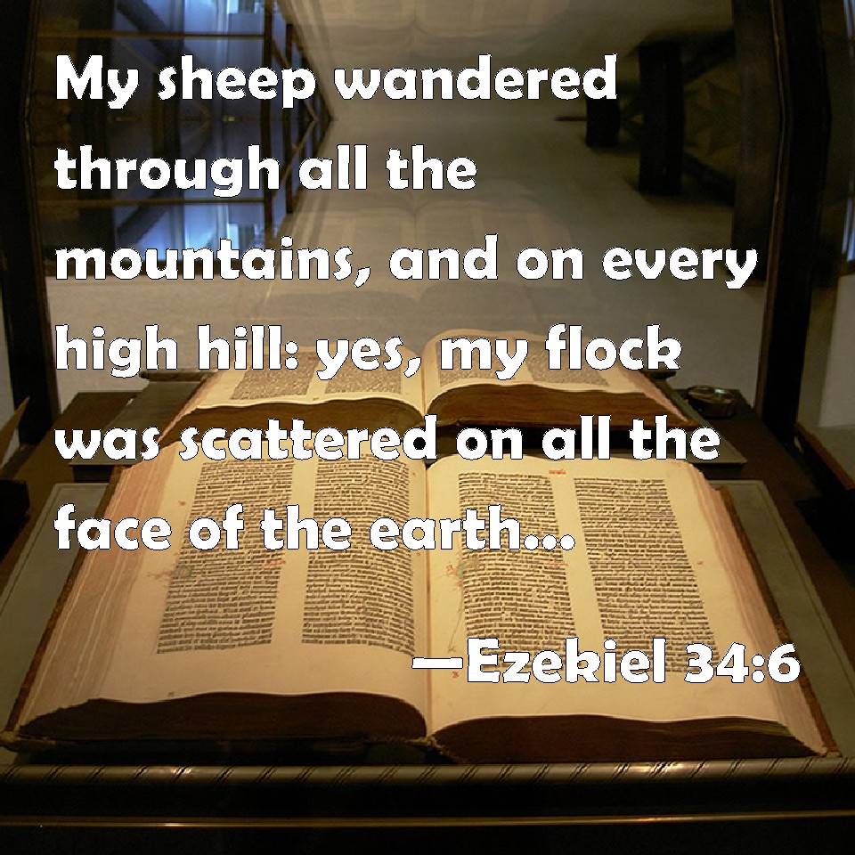Choose a Background Ezekiel 34:6 My sheep wandered through all the mountains, and on every high hill: yes, my flock was scattered on all the face of the earth, and none did search or seek after them. KJV: My sheep wandered through all the mountains, and upon every high hill: yea, my flock was scattered upon all the face of the earth, and none did search or seek after them. DRB: My sheep have wandered in every mountain, and in every high hill: and my flocks mere scattered upon the face of the earth, and there was none that sought them, there was none, I say, that sought them. DBT: My sheep wandered through all the mountains, and upon every high hill, and my sheep have been scattered upon all the face of the earth, and there was none that searched, or that sought for them. ERV: My sheep wandered through all the mountains, and upon every high hill: yea, my sheep were scattered upon all the face of the earth; and there was none that did search or seek after them. WBT: My sheep wandered through all the mountains, and upon every high hill: yes, my flock was scattered upon all the face of the earth, and none did search or seek for them. WEB: My sheep wandered through all the mountains, and on every high hill: yes, my sheep were scattered on all the surface of the earth; and there was none who searched or sought. YLT: Go astray do My flock on all the mountains, And on every high hill, And on all the face of the land have My flock been scattered, And there is none inquiring, and none seeking.Links Ezekiel 34:6 NIV • Ezekiel 34:6 NLT • Ezekiel 34:6 ESV • Ezekiel 34:6 NASB • Ezekiel 34:6 KJV • Ezekiel 34:6 Interlinear • Ezekiel 34:6 Commentaries • Ezekiel 34:6 Parallel Texts • Ezekiel 34:6 Bible Apps • Ezekiel 34:6 Parallel • Bible Hub |