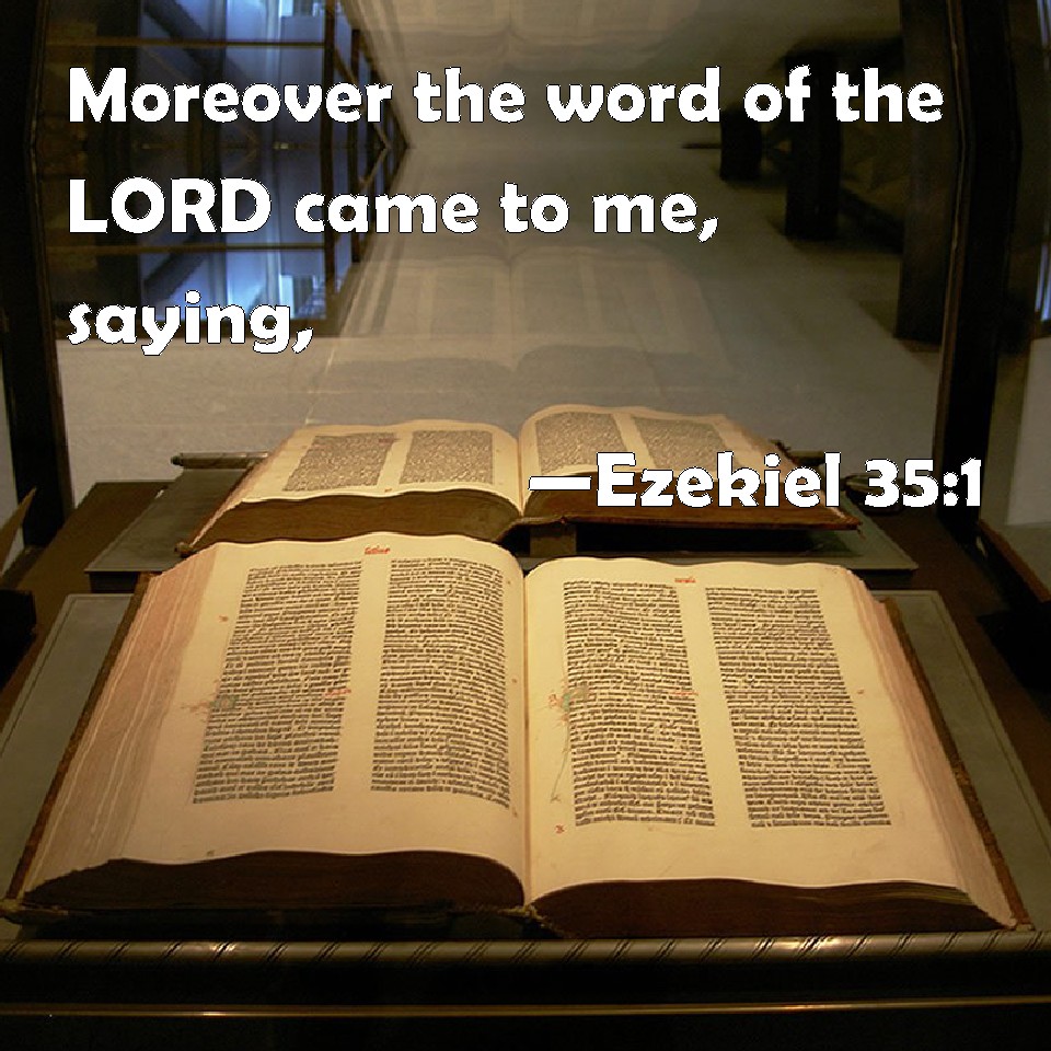 Choose a Background Ezekiel 35:1 Moreover the word of the LORD came to me, saying, KJV: Moreover the word of the LORD came unto me, saying, DRB: And the word of the Lord came to me, saying: DBT: And the word of Jehovah came unto me, saying, ERV: Moreover the word of the LORD came unto me, saying, WBT: Moreover the word of the LORD came to me, saying, WEB: Moreover the word of Yahweh came to me, saying, YLT: And there is a word of Jehovah unto me, saying:Links Ezekiel 35:1 NIV • Ezekiel 35:1 NLT • Ezekiel 35:1 ESV • Ezekiel 35:1 NASB • Ezekiel 35:1 KJV • Ezekiel 35:1 Interlinear • Ezekiel 35:1 Commentaries • Ezekiel 35:1 Parallel Texts • Ezekiel 35:1 Bible Apps • Ezekiel 35:1 Parallel • Bible Hub |
