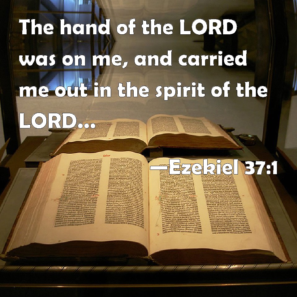 Choose a Background Ezekiel 37:1 The hand of the LORD was on me, and carried me out in the spirit of the LORD, and set me down in the middle of the valley which was full of bones, KJV: The hand of the LORD was upon me, and carried me out in the spirit of the LORD, and set me down in the midst of the valley which was full of bones, DRB: The hand of the Lord was upon me, and brought me forth in the spirit of the Lord: and set me down in the midst of a plain that was full of bones. DBT: The hand of Jehovah was upon me, and Jehovah carried me out in the Spirit, and set me down in the midst of a valley; and it was full of bones. ERV: The hand of the LORD was upon me, and he carried me out in the spirit of the LORD, and set me down in the midst of the valley; and it was full of bones; WBT: The hand of the LORD was upon me, and carried me out in the spirit of the LORD, and set me down in the midst of the valley which was full of bones, WEB: The hand of Yahweh was on me, and he brought me out in the Spirit of Yahweh, and set me down in the midst of the valley; and it was full of bones. YLT: There hath been upon me a hand of Jehovah, and He taketh me forth in the Spirit of Jehovah, and doth place me in the midst of the valley, and it is full of bones,Links Ezekiel 37:1 NIV • Ezekiel 37:1 NLT • Ezekiel 37:1 ESV • Ezekiel 37:1 NASB • Ezekiel 37:1 KJV • Ezekiel 37:1 Interlinear • Ezekiel 37:1 Commentaries • Ezekiel 37:1 Parallel Texts • Ezekiel 37:1 Bible Apps • Ezekiel 37:1 Parallel • Bible Hub |
