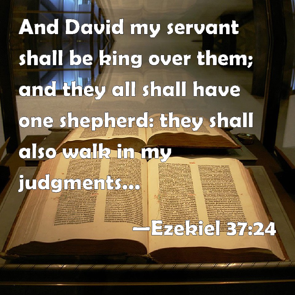 Choose a Background Ezekiel 37:24 And David my servant shall be king over them; and they all shall have one shepherd: they shall also walk in my judgments, and observe my statutes, and do them. KJV: And David my servant shall be king over them; and they all shall have one shepherd: they shall also walk in my judgments, and observe my statutes, and do them. DRB: And my servant David shall be king over them, and they shall have one shepherd: they shall walk in my judgments, and shall keep my commandments, and shall do them. DBT: And David my servant shall be king over them; and they all shall have one shepherd: and they shall walk in mine ordinances, and keep my statutes, and do them. ERV: And my servant David shall be king over them; and they all shall have one shepherd: they shall also walk in my judgments, and observe my statutes, and do them. WBT: And David my servant shall be king over them; and they all shall have one shepherd: they shall also walk in my judgments, and observe my statutes, and do them. WEB: My servant David shall be king over them; and they all shall have one shepherd: they shall also walk in my ordinances, and observe my statutes, and do them. YLT: And My servant David is king over them, And one shepherd have they all, And in My judgments they go, And My statutes they keep, and have done them.Links Ezekiel 37:24 NIV • Ezekiel 37:24 NLT • Ezekiel 37:24 ESV • Ezekiel 37:24 NASB • Ezekiel 37:24 KJV • Ezekiel 37:24 Interlinear • Ezekiel 37:24 Commentaries • Ezekiel 37:24 Parallel Texts • Ezekiel 37:24 Bible Apps • Ezekiel 37:24 Parallel • Bible Hub |