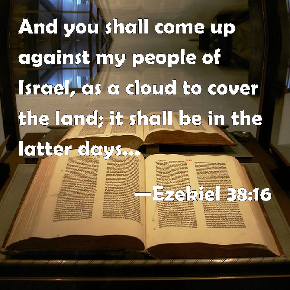 Choose a Background Ezekiel 38:16 And you shall come up against my people of Israel, as a cloud to cover the land; it shall be in the latter days, and I will bring you against my land, that the heathen may know me, when I shall be sanctified in you, O Gog, before their eyes. KJV: And thou shalt come up against my people of Israel, as a cloud to cover the land; it shall be in the latter days, and I will bring thee against my land, that the heathen may know me, when I shall be sanctified in thee, O Gog, before their eyes. DRB: And thou shalt come upon my people of Israel like a cloud, to cover the earth. Thou shalt be in the latter days, and I will bring thee upon my land: that the nations may know me, when I shall be sanctified in thee, O Gog, before their eyes. DBT: And thou shalt come up against my people Israel as a cloud to cover the land it shall be at the end of days and I will bring thee against my land, that the nations may know me, when I shall be hallowed in thee, O Gog, before their eyes. ERV: and thou shalt come up against my people Israel, as a cloud to cover the land; it shall come to pass in the latter days, that I will bring thee against my land, that the nations may know me, when I shall be sanctified in thee, O Gog, before their eyes. WBT: And thou shalt come against my people of Israel, as a cloud to cover the land; it shall be in the latter days, and I will bring thee against my land, that the heathen may know me, when I shall be sanctified in thee, O Gog, before their eyes. WEB: and you shall come up against my people Israel, as a cloud to cover the land: it shall happen in the latter days, that I will bring you against my land, that the nations may know me, when I shall be sanctified in you, Gog, before their eyes. YLT: And thou hast come up against My people Israel, As a cloud to cover the land, In the latter end of the days it is, And I have brought thee in against My land, In order that the nations may know Me, In My being sanctified in thee before their eyes, O Gog.Links Ezekiel 38:16 NIV • Ezekiel 38:16 NLT • Ezekiel 38:16 ESV • Ezekiel 38:16 NASB • Ezekiel 38:16 KJV • Ezekiel 38:16 Interlinear • Ezekiel 38:16 Commentaries • Ezekiel 38:16 Parallel Texts • Ezekiel 38:16 Bible Apps • Ezekiel 38:16 Parallel • Bible Hub |