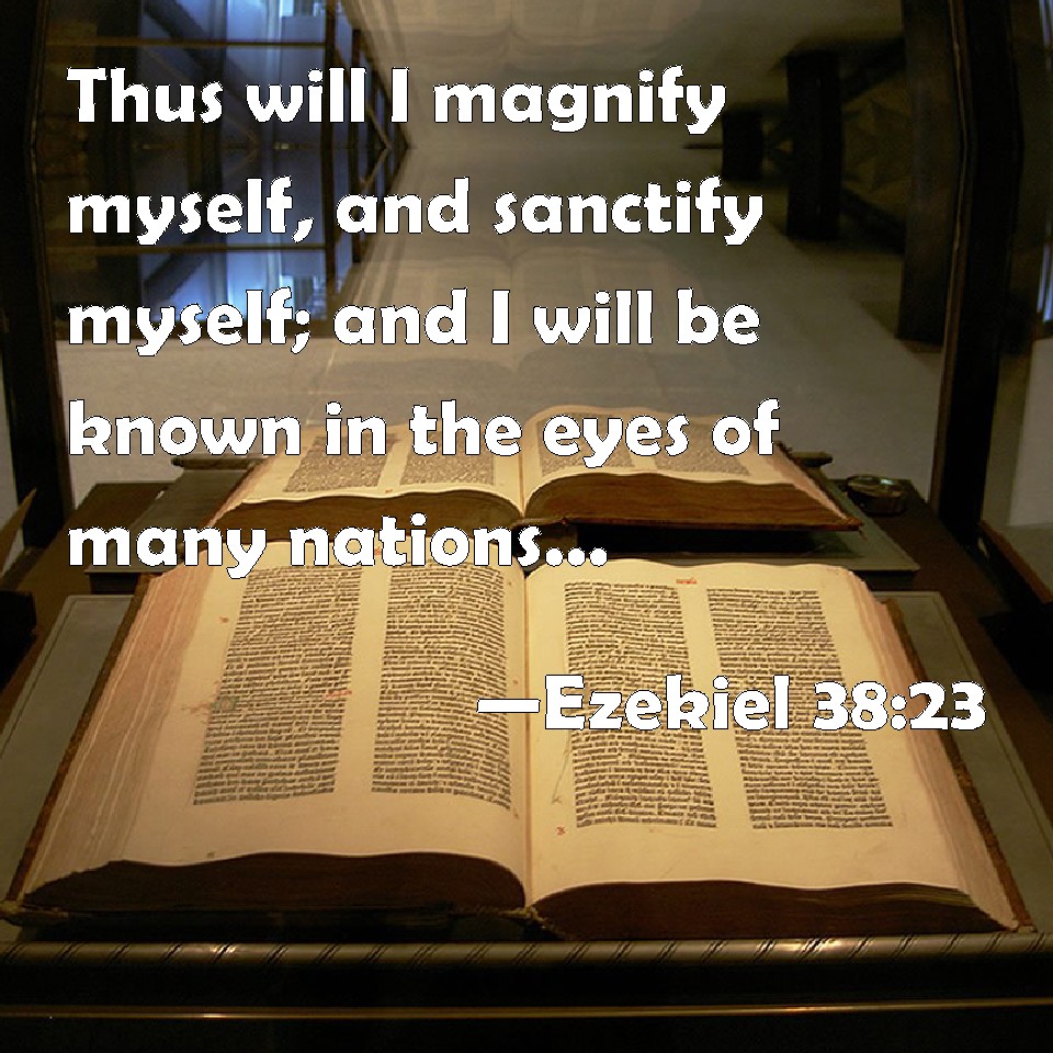 Choose a Background Ezekiel 38:23 Thus will I magnify myself, and sanctify myself; and I will be known in the eyes of many nations, and they shall know that I am the LORD. KJV: Thus will I magnify myself, and sanctify myself; and I will be known in the eyes of many nations, and they shall know that I am the LORD. DRB: And I will be magnified, and I will be sanctified: and I will be known in the eyes of many nations: and they shall know that I am the Lord. DBT: And I will magnify myself, and sanctify myself, and I will be known in the eyes of many nations, and they shall know that I am Jehovah. ERV: And I will magnify myself, and sanctify myself, and I will make myself known in the eyes of many nations; and they shall know that I am the LORD. WBT: Thus will I magnify myself, and sanctify myself; and I will be known in the eyes of many nations, and they shall know that I am the LORD. WEB: I will magnify myself, and sanctify myself, and I will make myself known in the eyes of many nations; and they shall know that I am Yahweh. YLT: And I have magnified Myself, and sanctified Myself, And I have been known before the eyes of many nations, And they have known that I am Jehovah!Links Ezekiel 38:23 NIV • Ezekiel 38:23 NLT • Ezekiel 38:23 ESV • Ezekiel 38:23 NASB • Ezekiel 38:23 KJV • Ezekiel 38:23 Interlinear • Ezekiel 38:23 Commentaries • Ezekiel 38:23 Parallel Texts • Ezekiel 38:23 Bible Apps • Ezekiel 38:23 Parallel • Bible Hub |