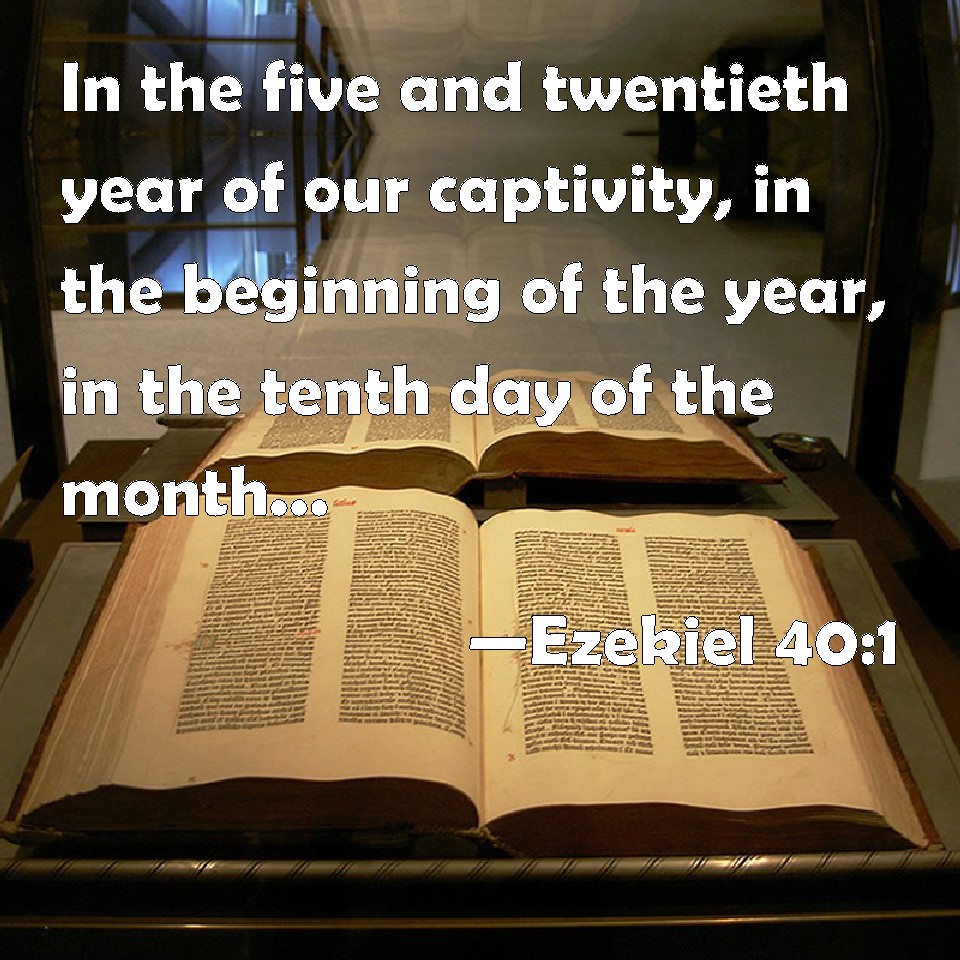 Choose a Background Ezekiel 40:1 In the five and twentieth year of our captivity, in the beginning of the year, in the tenth day of the month, in the fourteenth year after that the city was smitten, in the selfsame day the hand of the LORD was on me, and brought me thither. KJV: In the five and twentieth year of our captivity, in the beginning of the year, in the tenth day of the month, in the fourteenth year after that the city was smitten, in the selfsame day the hand of the LORD was upon me, and brought me thither. DRB: In the five and twentieth year of our captivity, in the beginning of the year, the tenth day of the month, the fourteenth year after the city was destroyed: in the selfsame day the hand of the Lord was upon me, and he brought me thither. DBT: In the twenty-fifth year of our captivity, in the beginning of the year, on the tenth of the month, in the fourteenth year after that the city was smitten, on that same day the hand of Jehovah was upon me, and he brought me thither. ERV: In the five and twentieth year of our captivity, in the beginning of the year, in the tenth day of the month, in the fourteenth year after that the city was smitten, in the selfsame day, the hand of the LORD was upon me, and he brought me thither. WBT: In the five and twentieth year of our captivity, in the beginning of the year, in the tenth day of the month, in the fourteenth year after the city was smitten, in the same day the hand of the LORD was upon me, and brought me thither. WEB: In the five and twentieth year of our captivity, in the beginning of the year, in the tenth [day] of the month, in the fourteenth year after that the city was struck, in the same day, the hand of Yahweh was on me, and he brought me there. YLT: In the twenty and fifth year of our removal, in the beginning of the year, in the tenth of the month, in the fourteenth year after that the city was smitten, in this self-same day hath a hand of Jehovah been upon me, and He bringeth me in thither;Links Ezekiel 40:1 NIV • Ezekiel 40:1 NLT • Ezekiel 40:1 ESV • Ezekiel 40:1 NASB • Ezekiel 40:1 KJV • Ezekiel 40:1 Interlinear • Ezekiel 40:1 Commentaries • Ezekiel 40:1 Parallel Texts • Ezekiel 40:1 Bible Apps • Ezekiel 40:1 Parallel • Bible Hub |