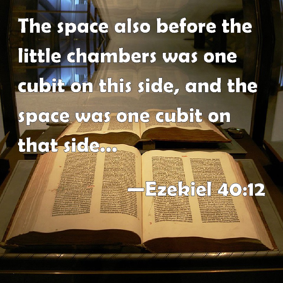 Choose a Background Ezekiel 40:12 The space also before the little chambers was one cubit on this side, and the space was one cubit on that side: and the little chambers were six cubits on this side, and six cubits on that side. KJV: The space also before the little chambers was one cubit on this side, and the space was one cubit on that side: and the little chambers were six cubits on this side, and six cubits on that side. DRB: And the border before the little chambers one cubit: and one cubit was the border on both sides: and the little chambers were six cubits on this side and that side. DBT: And there was a border before the chambers of one cubit, and a border of one cubit on the other side; and the chambers were six cubits on this side, and six cubits on that side. ERV: and a border before the lodges one cubit on this side, and a border, one cubit on that side; and the lodges six cubits on this side, and six cubit on that side. WBT: The space also before the little chambers was one cubit on this side, and the space was one cubit on that side: and the little chambers were six cubits on this side, and six cubits on that side. WEB: and a border before the lodges, one cubit [on this side], and a border, one cubit on that side; and the lodges, six cubits on this side, and six cubits on that side. YLT: and a border before the little chambers, one cubit, and one cubit is the border on this side, and the little chamber is six cubits on this side, and six cubits on that side.Links Ezekiel 40:12 NIV • Ezekiel 40:12 NLT • Ezekiel 40:12 ESV • Ezekiel 40:12 NASB • Ezekiel 40:12 KJV • Ezekiel 40:12 Interlinear • Ezekiel 40:12 Commentaries • Ezekiel 40:12 Parallel Texts • Ezekiel 40:12 Bible Apps • Ezekiel 40:12 Parallel • Bible Hub |