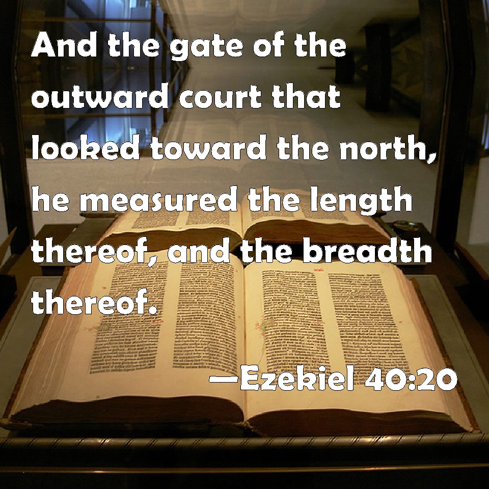 Choose a Background Ezekiel 40:20 And the gate of the outward court that looked toward the north, he measured the length thereof, and the breadth thereof. KJV: And the gate of the outward court that looked toward the north, he measured the length thereof, and the breadth thereof. DRB: He measured also both the length and the breadth of the gate of the outward court, which looked northward. DBT: And the gate of the outer court, that looked toward the north, he measured its length and its breadth. ERV: And the gate of the outer court whose prospect is toward the north, he measured the length thereof and the breadth thereof. WBT: And the gate of the outward court that looked towards the north, he measured its length, and its breadth. WEB: The gate of the outer court whose prospect is toward the north, he measured its length and its breadth. YLT: As to the gate of the outer court whose front is northward, he hath measured its length and its breadth;Links Ezekiel 40:20 NIV • Ezekiel 40:20 NLT • Ezekiel 40:20 ESV • Ezekiel 40:20 NASB • Ezekiel 40:20 KJV • Ezekiel 40:20 Interlinear • Ezekiel 40:20 Commentaries • Ezekiel 40:20 Parallel Texts • Ezekiel 40:20 Bible Apps • Ezekiel 40:20 Parallel • Bible Hub |