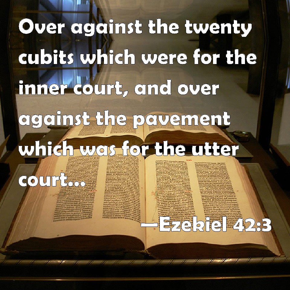 Choose a Background Ezekiel 42:3 Over against the twenty cubits which were for the inner court, and over against the pavement which was for the utter court, was gallery against gallery in three stories. KJV: Over against the twenty cubits which were for the inner court, and over against the pavement which was for the utter court, was gallery against gallery in three stories. DRB: Over against the twenty cubits of the inner court, and over against the pavement of the outward court that was paved with stone, where there was a gallery joined to a triple gallery. DBT: over against the twenty cubits that pertained to the inner court, and over against the pavement that pertained to the outer court; there was gallery against gallery in the third story; ERV: Over against the twenty cubits which belonged to the inner court, and over against the pavement which belonged to the outer court, was gallery against gallery in the third story. WBT: Over against the twenty cubits which were for the inner court, and over against the pavement which was for the outer court, was gallery against gallery in three stories. WEB: Over against the twenty [cubits] which belonged to the inner court, and over against the pavement which belonged to the outer court, was gallery against gallery in the third story. YLT: Over-against the twenty cubits that are to the inner court, and over-against the pavement that is to the outer court, is gallery over-against gallery, in the three storeys.Links Ezekiel 42:3 NIV • Ezekiel 42:3 NLT • Ezekiel 42:3 ESV • Ezekiel 42:3 NASB • Ezekiel 42:3 KJV • Ezekiel 42:3 Interlinear • Ezekiel 42:3 Commentaries • Ezekiel 42:3 Parallel Texts • Ezekiel 42:3 Bible Apps • Ezekiel 42:3 Parallel • Bible Hub |