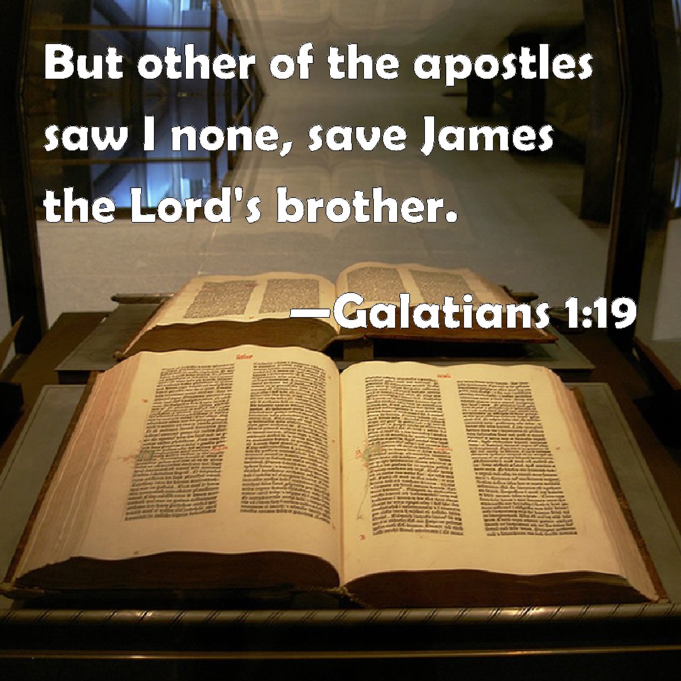 Choose a Background Galatians 1:19 But other of the apostles saw I none, save James the Lord's brother. KJV: But other of the apostles saw I none, save James the Lord's brother. DRB: But other of the apostles I saw none, saving James the brother of the Lord. DBT: but I saw none other of the apostles, but James the brother of the Lord. ERV: But other of the apostles saw I none, save James the Lord's brother. WBT: But I saw no other of the apostles, save James the Lord's brother. WEB: But of the other apostles I saw no one, except James, the Lord's brother. YLT: and other of the apostles I did not see, except James, the brother of the Lord.Links Galatians 1:19 NIV • Galatians 1:19 NLT • Galatians 1:19 ESV • Galatians 1:19 NASB • Galatians 1:19 KJV • Galatians 1:19 Interlinear • Galatians 1:19 Commentaries • Galatians 1:19 Parallel Texts • Galatians 1:19 Bible Apps • Galatians 1:19 Parallel • Bible Hub |