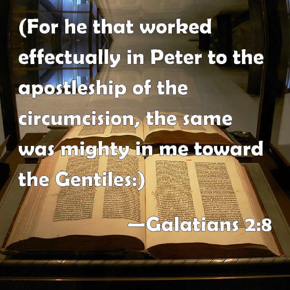 Galatians 2:8 (For he that worked effectually in Peter to the apostleship of the circumcision, the same was mighty in me toward the Gentiles:)