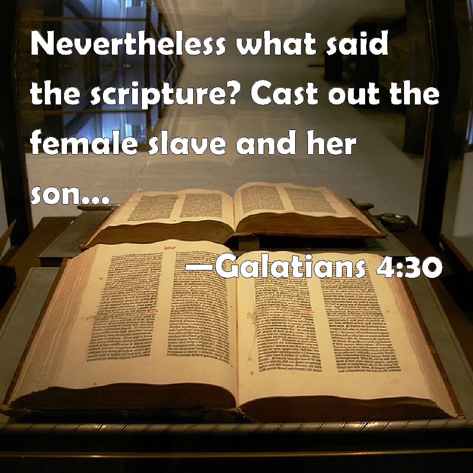 Galatians 4:30 Nevertheless what said the scripture? Cast out the female slave and her son: for the son of the female slave shall not be heir with the son of the free woman.