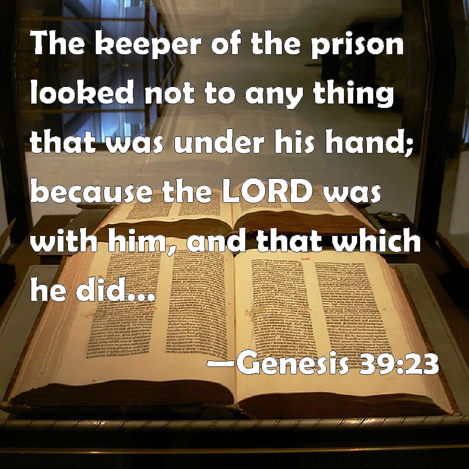 Choose a Background Genesis 39:23 The keeper of the prison looked not to any thing that was under his hand; because the LORD was with him, and that which he did, the LORD made it to prosper. KJV: The keeper of the prison looked not to any thing that was under his hand; because the LORD was with him, and that which he did, the LORD made it to prosper. DRB: Neither did he himself know any thing, having committed all things to him: for the Lord was with him, and made all that he did to prosper. DBT: The chief of the tower-house looked not to anything under his hand, because Jehovah was with him; and what he did, Jehovah made it prosper. ERV: The keeper of the prison looked not to any thing that was under his hand, because the LORD was with him; and that which he did, the LORD made it to prosper. WBT: The keeper of the prison looked not to any thing that was under his hand; because the LORD was with him: and that which he did the LORD made it to prosper. WEB: The keeper of the prison didn't look after anything that was under his hand, because Yahweh was with him; and that which he did, Yahweh made it prosper. YLT: the chief of the round-house seeth not anything under his hand, because Jehovah is with him, and that which he is doing Jehovah is causing to prosper.Links Genesis 39:23 NIV • Genesis 39:23 NLT • Genesis 39:23 ESV • Genesis 39:23 NASB • Genesis 39:23 KJV • Genesis 39:23 Interlinear • Genesis 39:23 Commentaries • Genesis 39:23 Parallel Texts • Genesis 39:23 Bible Apps • Genesis 39:23 Parallel • Bible Hub |