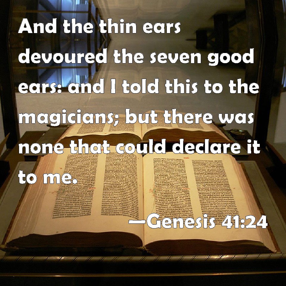 Genesis 41:24 And the thin ears devoured the seven good ears: and I told this to the magicians; but there was none that could declare it to me.