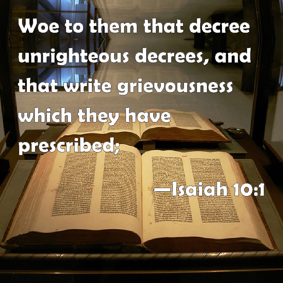 Isaiah 10:1 Woe to them that decree unrighteous decrees, and that write grievousness which they have prescribed;
