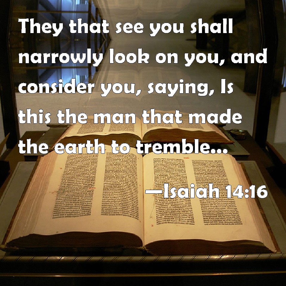 Isaiah 14:16 They that see you shall narrowly look on you, and consider you, saying, Is this the man that made the earth to tremble, that did shake kingdoms;