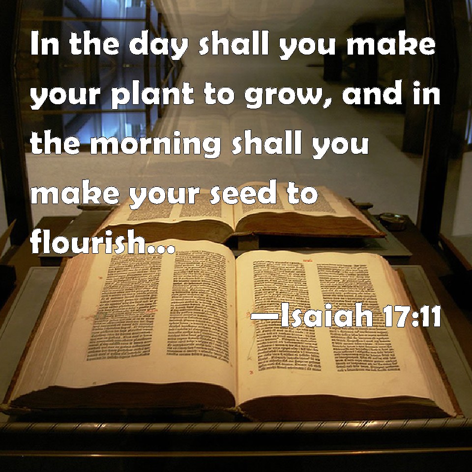 Choose a Background Isaiah 17:11 In the day shall you make your plant to grow, and in the morning shall you make your seed to flourish: but the harvest shall be a heap in the day of grief and of desperate sorrow. KJV: In the day shalt thou make thy plant to grow, and in the morning shalt thou make thy seed to flourish: but the harvest shall be a heap in the day of grief and of desperate sorrow. DRB: In the day of thy planting shall be the wild grape, and in the morning thy seed shall flourish: the harvest is taken away in the day of inheritance, and shall grieve thee much. DBT: in the day of thy planting wilt thou make them to grow, and on the morrow wilt thou make thy seed to flourish; but the harvest will flee in the day of taking possession, and the sorrow will be incurable. ERV: In the day of thy planting thou hedgest it in, and in the morning thou makest thy seed to blossom: but the harvest fleeth away in the day of grief and of desperate sorrow. WBT: In the day shalt thou make thy plant to grow, and in the morning shalt thou make thy seed to flourish: but the harvest shall be a heap in the day of grief and of desperate sorrow. WEB: In the day of your planting, you hedge it in. In the morning, you make your seed blossom, but the harvest flees away in the day of grief and of desperate sorrow. YLT: In the day thy plant thou causest to become great, And in the morning thy seed makest to flourish, A heap is the harvest in a day of overflowing, And of mortal pain.Links Isaiah 17:11 NIV • Isaiah 17:11 NLT • Isaiah 17:11 ESV • Isaiah 17:11 NASB • Isaiah 17:11 KJV • Isaiah 17:11 Interlinear • Isaiah 17:11 Commentaries • Isaiah 17:11 Parallel Texts • Isaiah 17:11 Bible Apps • Isaiah 17:11 Parallel • Bible Hub |