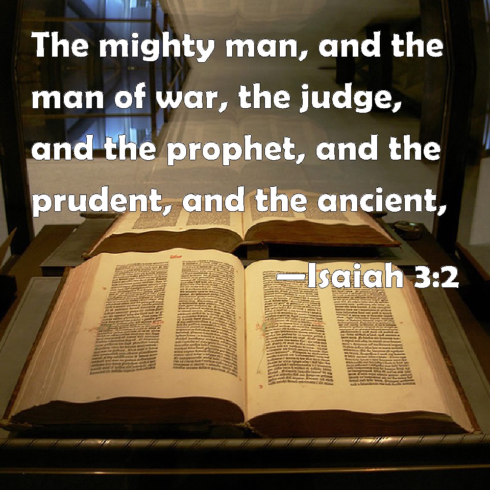 Choose a Background Isaiah 3:2 The mighty man, and the man of war, the judge, and the prophet, and the prudent, and the ancient, KJV: The mighty man, and the man of war, the judge, and the prophet, and the prudent, and the ancient, DRB: The strong man, and the man of war, the judge, and the prophet, and the cunning man, and the ancient. DBT: the mighty man and the man of war, the judge and the prophet, and the diviner and the elder, ERV: the mighty man, and the man of war; the judge, and the prophet, and the diviner, and the ancient; WBT: The mighty man, and the man of war, the judge, and the prophet, and the prudent, and the ancient, WEB: the mighty man, the man of war, the judge, the prophet, the diviner, the elder, YLT: Hero and man of war, judge and prophet, And diviner and elder,Links Isaiah 3:2 NIV • Isaiah 3:2 NLT • Isaiah 3:2 ESV • Isaiah 3:2 NASB • Isaiah 3:2 KJV • Isaiah 3:2 Interlinear • Isaiah 3:2 Commentaries • Isaiah 3:2 Parallel Texts • Isaiah 3:2 Bible Apps • Isaiah 3:2 Parallel • Bible Hub |