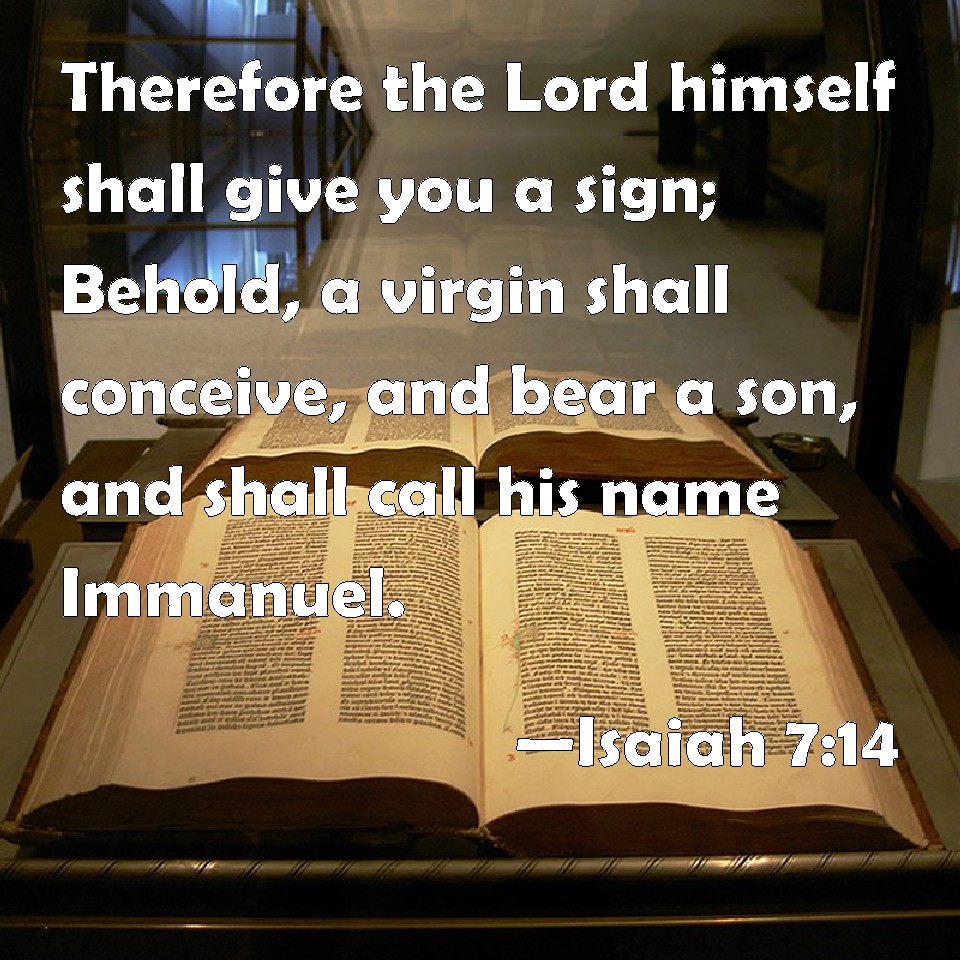 Choose a Background Isaiah 7:14 Therefore the Lord himself shall give you a sign; Behold, a virgin shall conceive, and bear a son, and shall call his name Immanuel. KJV: Therefore the Lord himself shall give you a sign; Behold, a virgin shall conceive, and bear a son, and shall call his name Immanuel. DRB: Therefore the Lord himself shall give you a sign. Behold a virgin shall conceive, and bear a son, and his name shall be called Emmanuel. DBT: Therefore will the Lord himself give you a sign: Behold, the virgin shall conceive and shall bring forth a son, and call his name Immanuel. ERV: Therefore the Lord himself shall give you a sign; behold, a virgin shall conceive, and bear a son, and shall call his name Immanuel. WBT: Therefore the Lord himself will give you a sign; Behold, a virgin shall conceive, and bear a son, and shall call his name Immanuel. WEB: Therefore the Lord himself will give you a sign. Behold, the virgin will conceive, and bear a son, and shall call his name Immanuel. YLT: Therefore the Lord Himself giveth to you a sign, Lo, the Virgin is conceiving, And is bringing forth a son, And hath called his name Immanuel,Links Isaiah 7:14 NIV • Isaiah 7:14 NLT • Isaiah 7:14 ESV • Isaiah 7:14 NASB • Isaiah 7:14 KJV • Isaiah 7:14 Interlinear • Isaiah 7:14 Commentaries • Isaiah 7:14 Parallel Texts • Isaiah 7:14 Bible Apps • Isaiah 7:14 Parallel • Bible Hub |