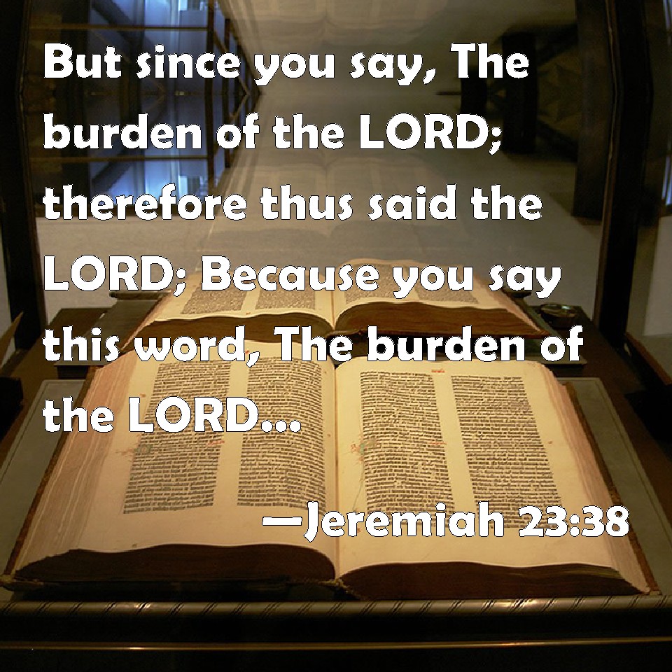 Choose a Background Jeremiah 23:38 But since you say, The burden of the LORD; therefore thus said the LORD; Because you say this word, The burden of the LORD, and I have sent to you, saying, You shall not say, The burden of the LORD; KJV: But since ye say, The burden of the LORD; therefore thus saith the LORD; Because ye say this word, The burden of the LORD, and I have sent unto you, saying, Ye shall not say, The burden of the LORD; DRB: But if you shall say: The burden of the Lord: therefore thus saith the Lord: Because you have said this word: The burden of the Lord: and I have sent to you saying: Say not, Tne burden of the Lord: DBT: But since ye say, The burden of Jehovah, therefore thus saith Jehovah: Because ye say this word, The burden of Jehovah, and I have sent unto you, saying, Ye shall not say, The burden of Jehovah; ERV: But if ye say, The burden of the LORD; therefore thus saith the LORD: Because ye say this word, The burden of the LORD, and I have sent unto you, saying, Ye shall not say, The burden of the LORD; WBT: But since ye say, The burden of the LORD; therefore thus saith the LORD; Because ye say this word, The burden of the LORD, and I have sent to you, saying, Ye shall not say, The burden of the LORD; WEB: But if you say, The burden of Yahweh; therefore thus says Yahweh: Because you say this word, The burden of Yahweh, and I have sent to you, saying, You shall not say, The burden of Yahweh; YLT: And if the burden of Jehovah ye say, Therefore thus said Jehovah: Because of your saying this word, The burden of Jehovah, And I do send unto you, saying, Ye do not say, The burden of Jehovah.Links Jeremiah 23:38 NIV • Jeremiah 23:38 NLT • Jeremiah 23:38 ESV • Jeremiah 23:38 NASB • Jeremiah 23:38 KJV • Jeremiah 23:38 Interlinear • Jeremiah 23:38 Commentaries • Jeremiah 23:38 Parallel Texts • Jeremiah 23:38 Bible Apps • Jeremiah 23:38 Parallel • Bible Hub |