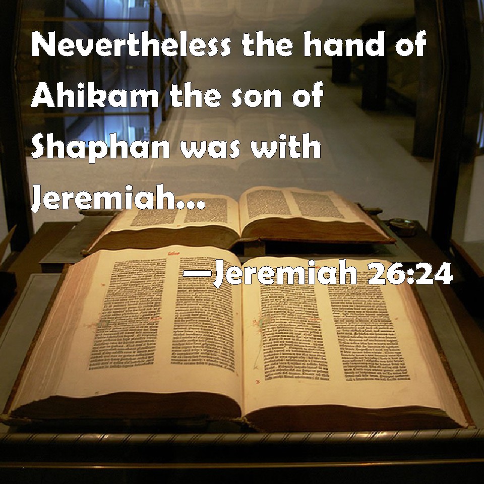 Jeremiah 26:24 Nevertheless the hand of Ahikam the son of Shaphan was with Jeremiah, that they should not give him into the hand of the people to put him to death.