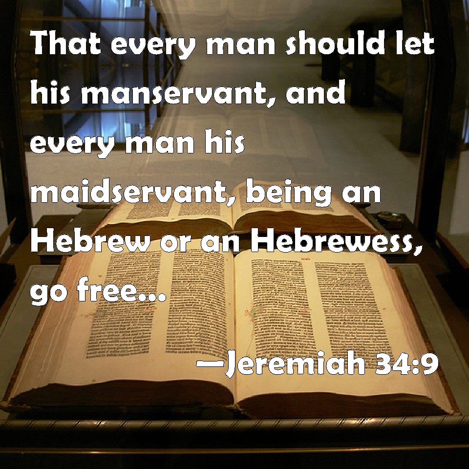 Choose a Background Jeremiah 34:9 That every man should let his manservant, and every man his maidservant, being an Hebrew or an Hebrewess, go free; that none should serve himself of them, to wit, of a Jew his brother. KJV: That every man should let his manservant, and every man his maidservant, being an Hebrew or an Hebrewess, go free; that none should serve himself of them, to wit, of a Jew his brother. DRB: That every man should let his manservant, and every man his maidservant, being a Hebrew man or a Hebrew woman, go free: and that they should not lord it over them, to wit, over the Jews their brethren. DBT: that every man should let his bondman, and every man his bondmaid, the Hebrew and the Hebrewess, go free, that none should exact service of them, that is, of a Jew his brother. ERV: that every man should let his manservant, and every man his maidservant, being an Hebrew or an Hebrewess, go free; that none should serve himself of them, to wit, of a Jew his brother: WBT: That every man should liberate his man-servant, and every man his maid-servant, being a Hebrew or a Hebrewess; that none should retain them in service, to wit, a Jew his brother. WEB: that every man should let his male servant, and every man his female servant, who is a Hebrew or a Hebrewess, go free; that none should make bondservants of them, [to wit], of a Jew his brother. YLT: to send out each his man-servant, and each his maid-servant — the Hebrew and the Hebrewess — free, so as not to lay service on them, any on a Jew his brother;Links Jeremiah 34:9 NIV • Jeremiah 34:9 NLT • Jeremiah 34:9 ESV • Jeremiah 34:9 NASB • Jeremiah 34:9 KJV • Jeremiah 34:9 Interlinear • Jeremiah 34:9 Commentaries • Jeremiah 34:9 Parallel Texts • Jeremiah 34:9 Bible Apps • Jeremiah 34:9 Parallel • Bible Hub |
