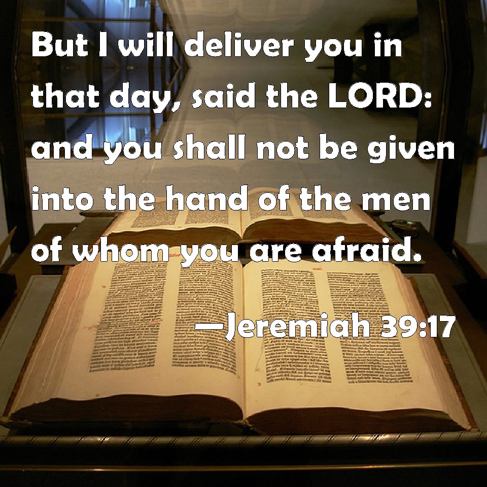 Jeremiah 39:17 But I will deliver you in that day, said the LORD: and you shall not be given into the hand of the men of whom you are afraid.