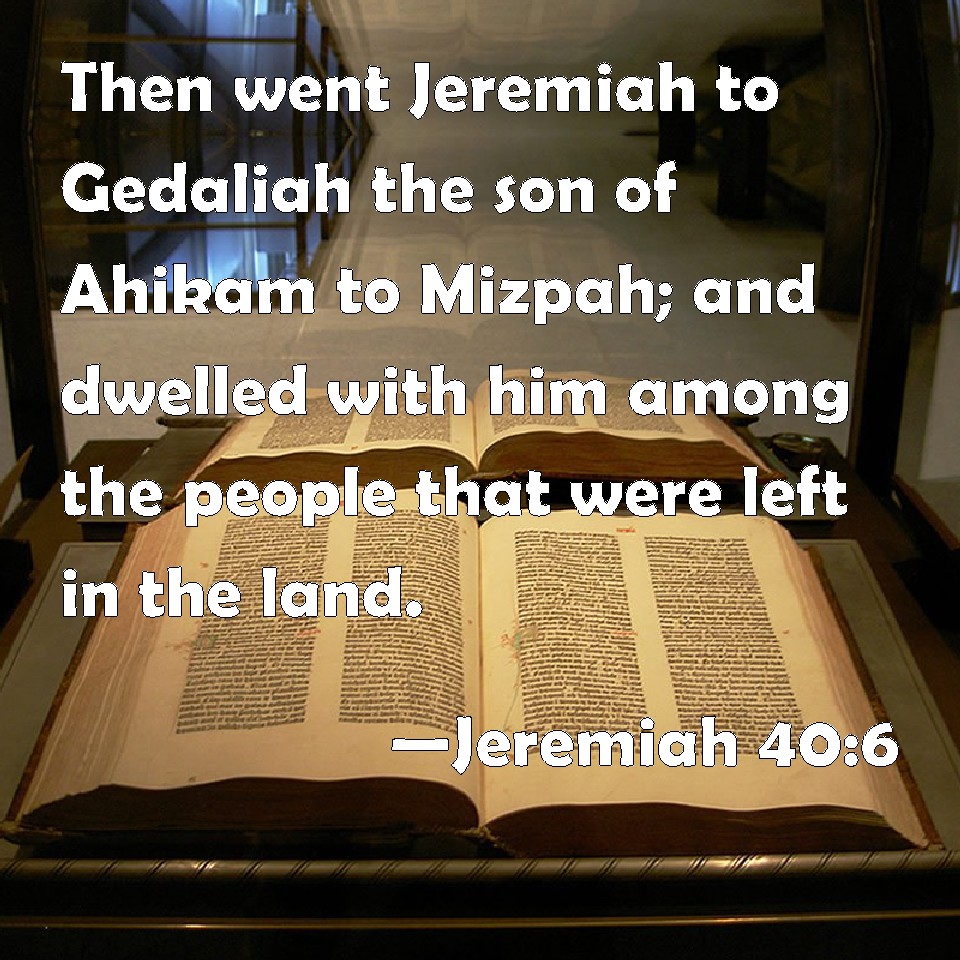 Then Jeremiah went to Gedaliah the son of Ahikam to Mizpah; and dwelt with him among the people that were left in the land.