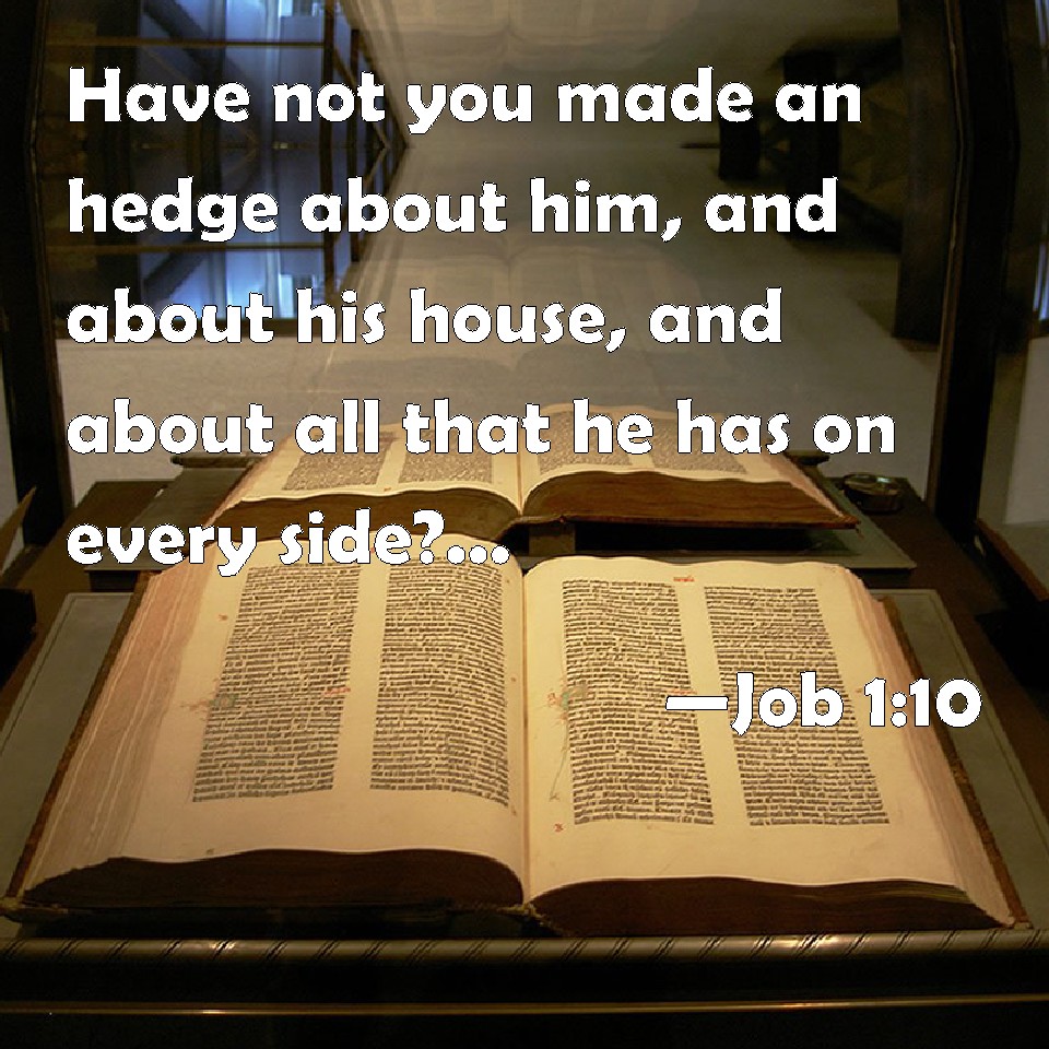 Choose a Background Job 1:10 Have not you made an hedge about him, and about his house, and about all that he has on every side? you have blessed the work of his hands, and his substance is increased in the land. KJV: Hast not thou made an hedge about him, and about his house, and about all that he hath on every side? thou hast blessed the work of his hands, and his substance is increased in the land. DRB: Hast not thou made a fence for him, and his house, and all his substance round about, blessed the works of his hands, and his possession hath increased on the earth ? DBT: Hast not thou made a hedge about him, and about his house, and about all that he hath on every side? Thou hast blessed the work of his hands, and his substance is spread abroad in the land. ERV: Hast not thou made an hedge about him, and about his house, and about all that he hath, on every side? thou hast blessed the work of his hands, and his substance is increased in the land. WBT: Hast not thou made a hedge about him, and about his house, and about all that he hath on every side? thou hast blessed the work of his hands, and his substance is increased in the land. WEB: Haven't you made a hedge around him, and around his house, and around all that he has, on every side? You have blessed the work of his hands, and his substance is increased in the land. YLT: Hast not Thou made a hedge for him, and for his house, and for all that he hath — round about?Links Job 1:10 NIV • Job 1:10 NLT • Job 1:10 ESV • Job 1:10 NASB • Job 1:10 KJV • Job 1:10 Interlinear • Job 1:10 Commentaries • Job 1:10 Parallel Texts • Job 1:10 Bible Apps • Job 1:10 Parallel • Bible Hub |
