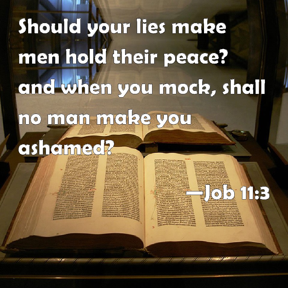 Job 11:3 Should your lies make men hold their peace? and when you mock, shall no man make you ashamed?