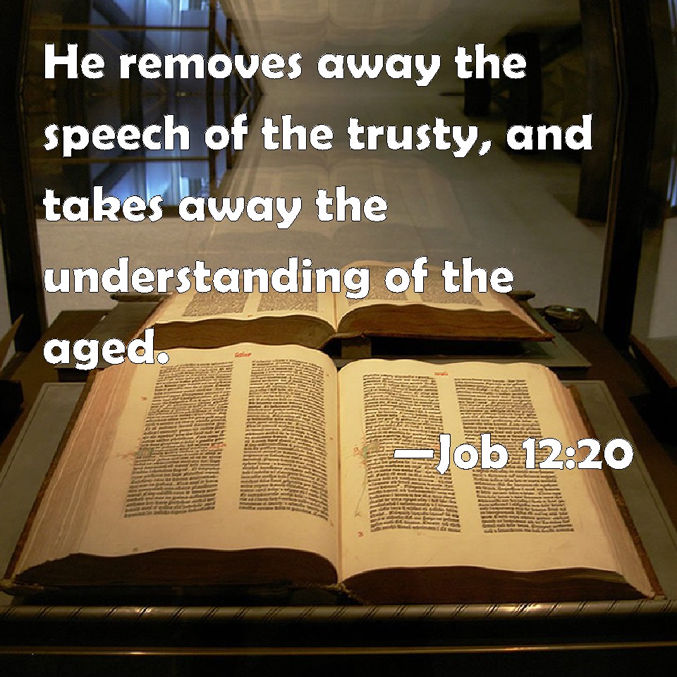 Job 12:20 He removes away the speech of the trusty, and takes away the understanding of the aged.