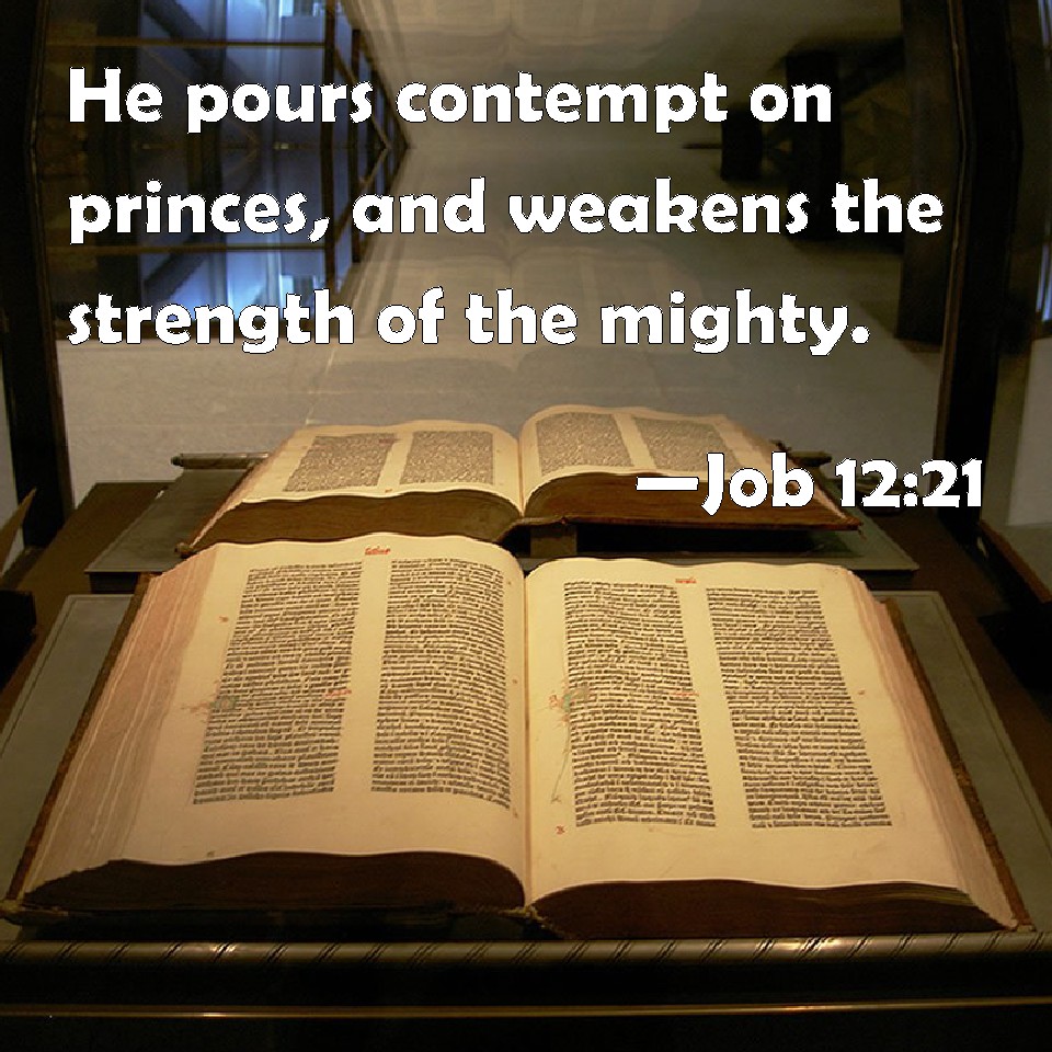 Job 12:21 He pours contempt on princes, and weakens the strength of the mighty.