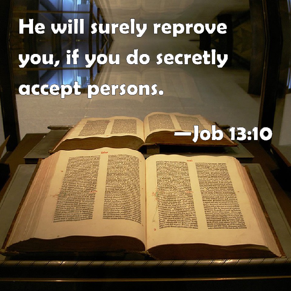 Job 13:10 He will surely reprove you, if you do secretly accept persons.