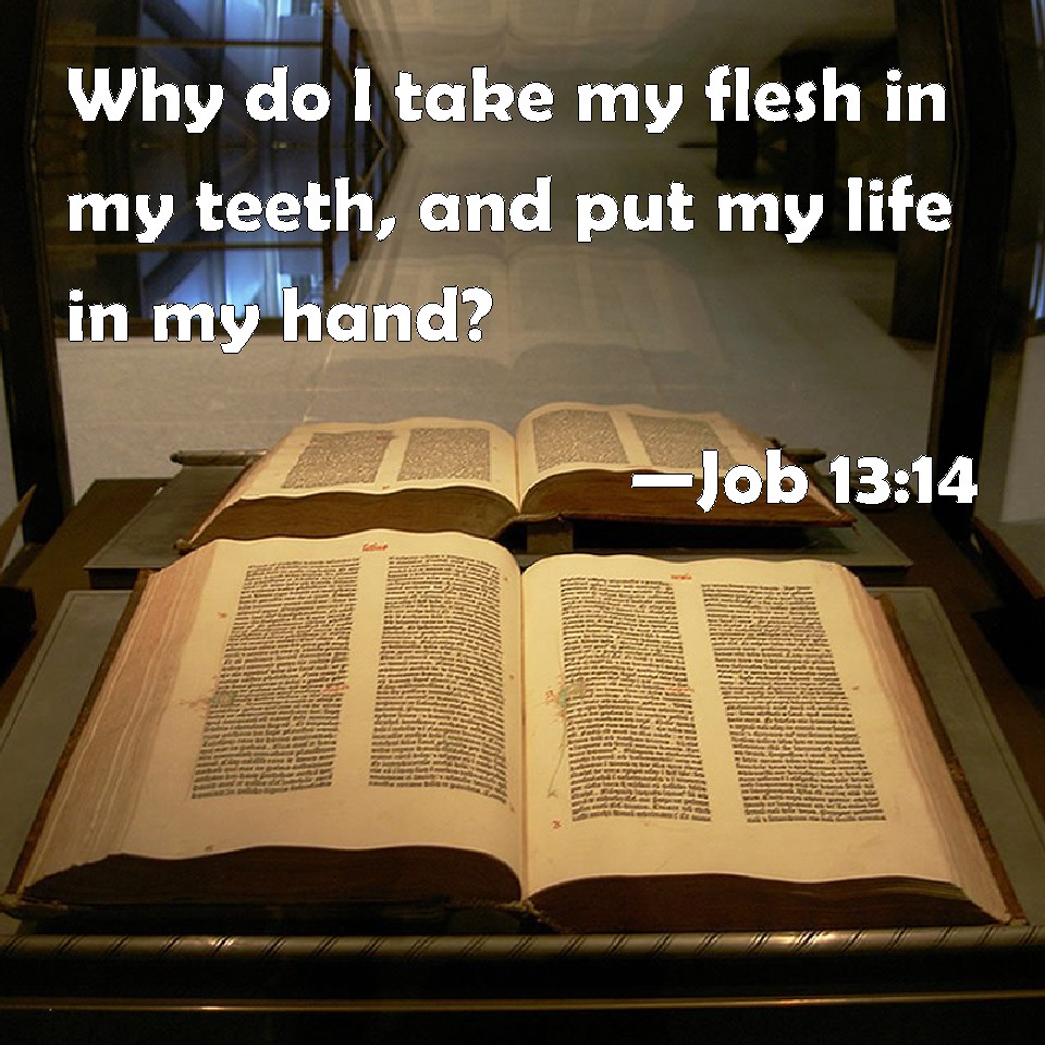Job 13:14 Why do I take my flesh in my teeth, and put my life in my hand?