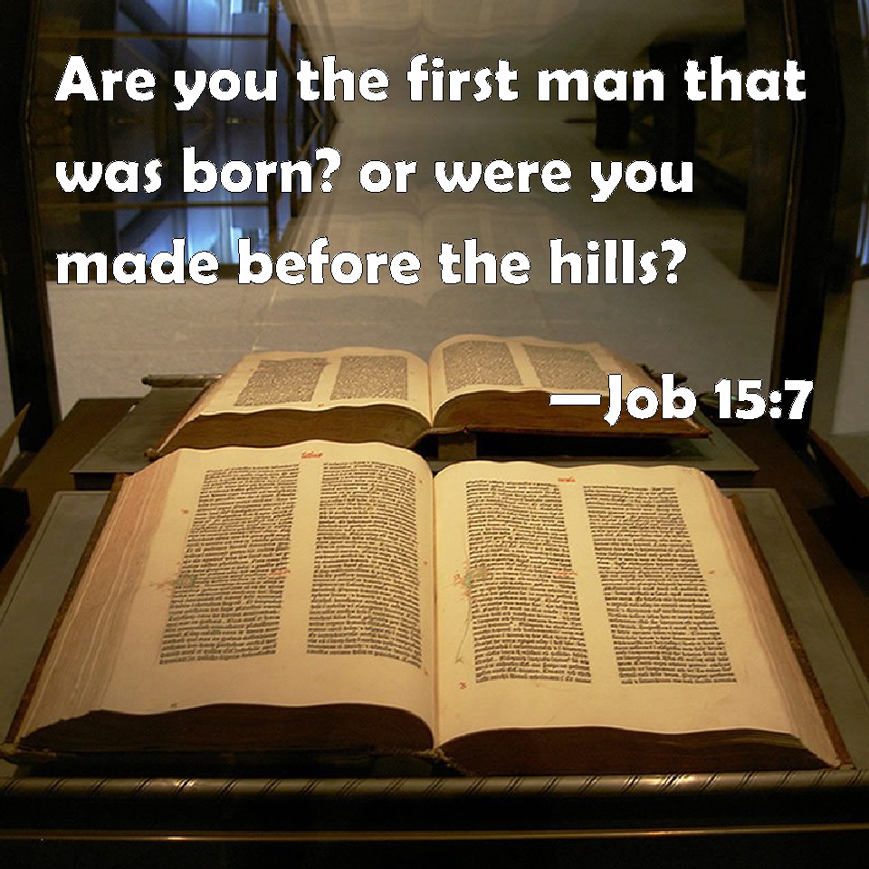 Job 15:7 Are you the first man that was born? or were you made before the hills?
