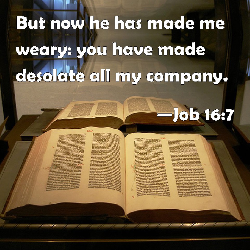 Job 16:7 But now he has made me weary: you have made desolate all my company.