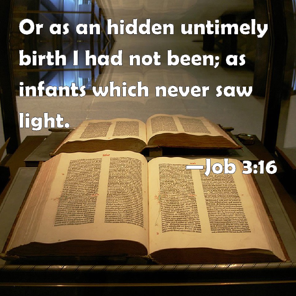 Job 3:16 Or as an hidden untimely birth I had not been; as infants which never saw light.