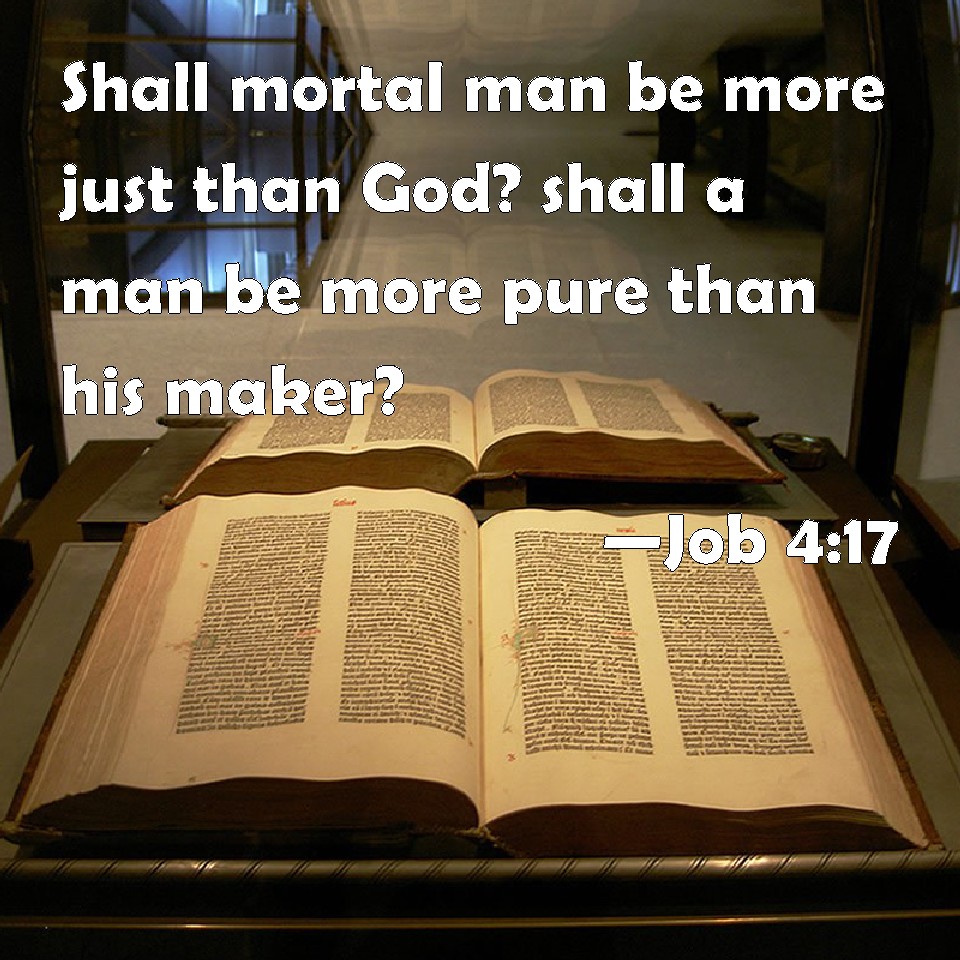Job 4:17 Shall mortal man be more just than God? shall a man be more pure than his maker?