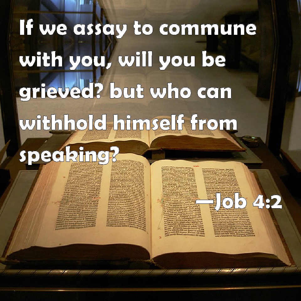 Job 4:2 If we assay to commune with you, will you be grieved? but who can withhold himself from speaking?