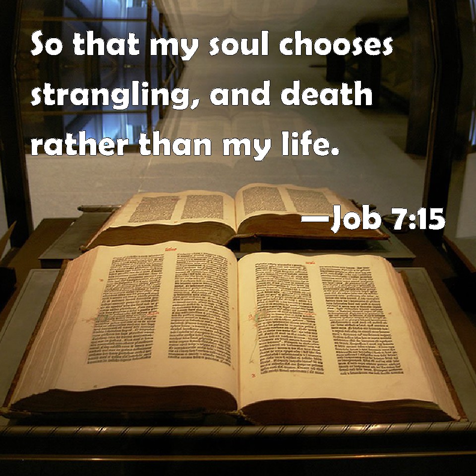 Job 7:15 So that my soul chooses strangling, and death rather than my life.