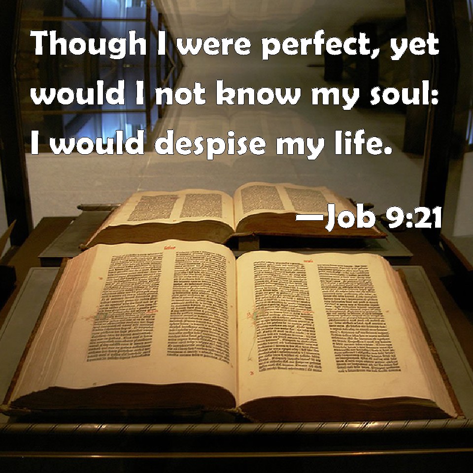 Job 9:21 Though I were perfect, yet would I not know my soul: I would despise my life.