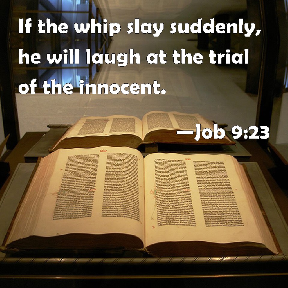 Job 9:23 If the whip slay suddenly, he will laugh at the trial of the innocent.