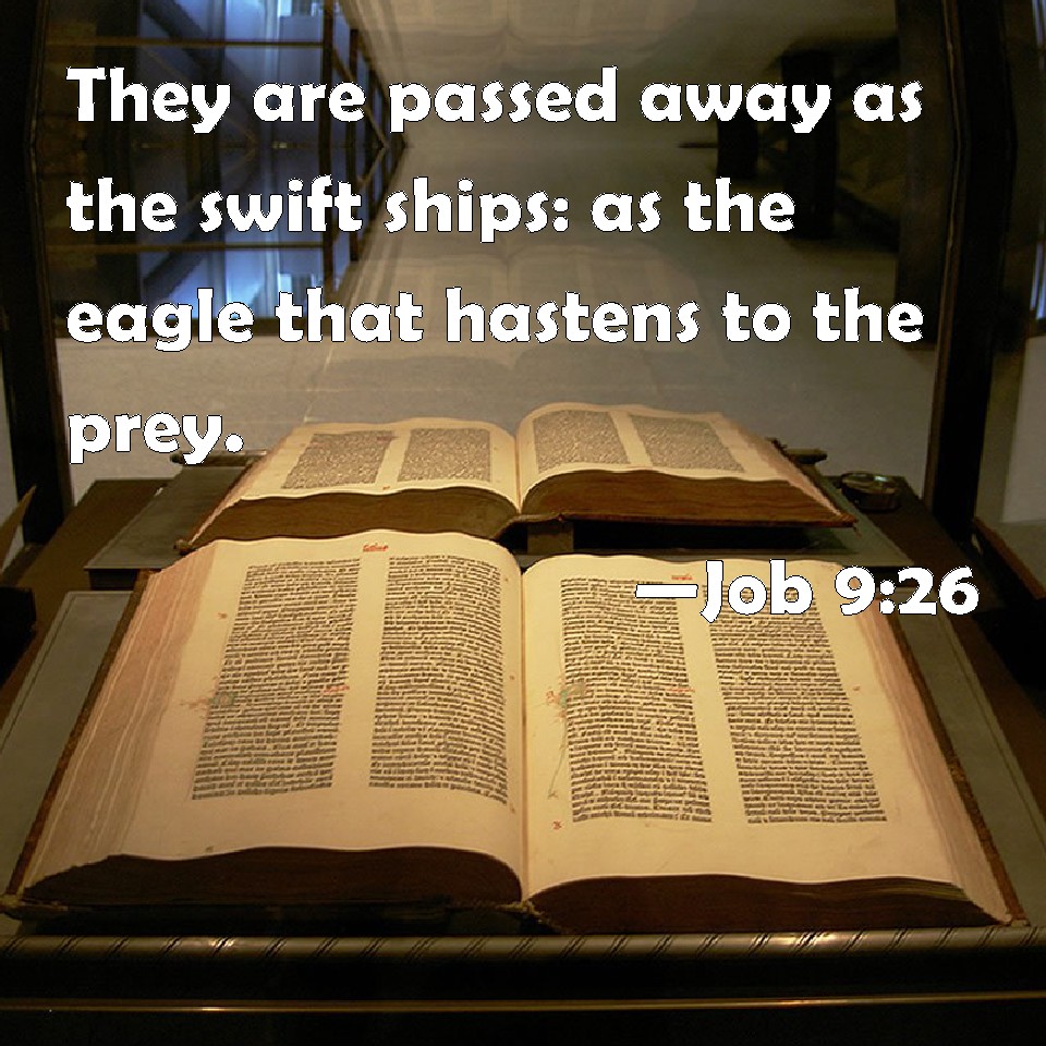Job 9:26 They are passed away as the swift ships: as the eagle that hastens to the prey.