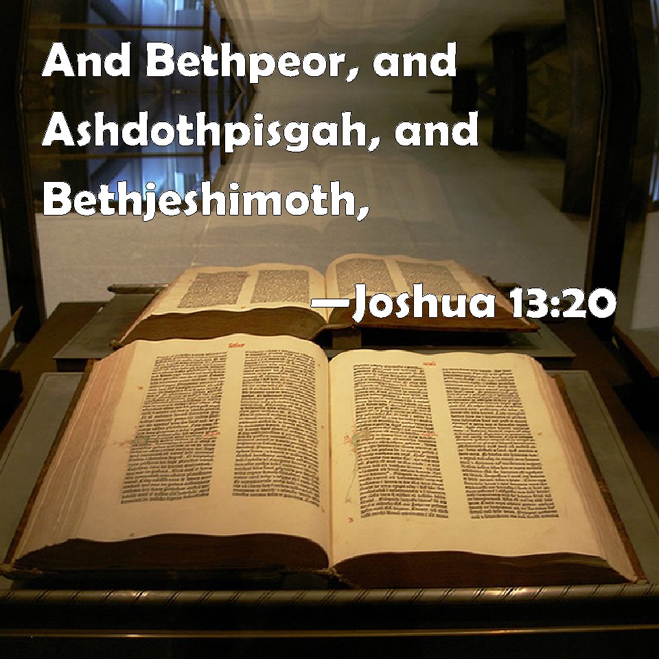 Choose a Background Joshua 13:20 And Bethpeor, and Ashdothpisgah, and Bethjeshimoth, KJV: And Bethpeor, and Ashdothpisgah, and Bethjeshimoth, DRB: Bethphogor and Asedoth, Phasga and Bethiesimoth, DBT: and Beth-Peor, and the slopes of Pisgah, and Beth-jeshimoth; ERV: and Beth-peor, and the slopes of Pisgah, and Beth-jeshimoth; WBT: And Beth-peor, and Ashdoth-pisgah, and Beth-jeshimoth, WEB: Beth Peor, the slopes of Pisgah, Beth Jeshimoth, YLT: and Beth-Peor, and the springs of Pisgah, and Beth-Jeshimoth,Links Joshua 13:20 NIV • Joshua 13:20 NLT • Joshua 13:20 ESV • Joshua 13:20 NASB • Joshua 13:20 KJV • Joshua 13:20 Interlinear • Joshua 13:20 Commentaries • Joshua 13:20 Parallel Texts • Joshua 13:20 Bible Apps • Joshua 13:20 Parallel • Bible Hub |