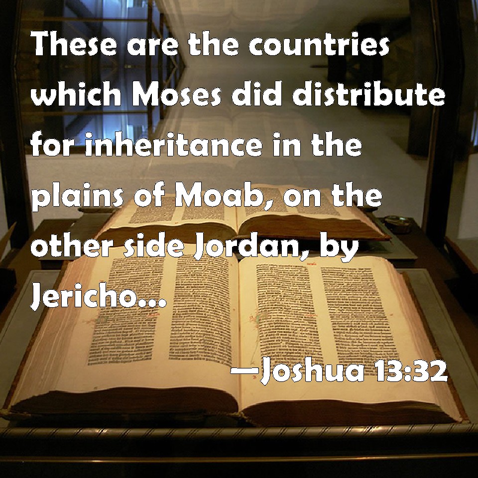 Choose a Background Joshua 13:32 These are the countries which Moses did distribute for inheritance in the plains of Moab, on the other side Jordan, by Jericho, eastward. KJV: These are the countries which Moses did distribute for inheritance in the plains of Moab, on the other side Jordan, by Jericho, eastward. DRB: This possession Moses divided in the plains of Moab, beyond the Jordan, over against Jericho on the east side. DBT: This is that which Moses allotted for inheritance in the plains of Moab, beyond the Jordan of Jericho, eastward. ERV: These are the inheritances which Moses distributed in the plains of Moab, beyond the Jordan at Jericho, eastward. WBT: These are the countries which Moses distributed for inheritance in the plains of Moab, on the other side of Jordan by Jericho eastward. WEB: These are the inheritances which Moses distributed in the plains of Moab, beyond the Jordan at Jericho, eastward. YLT: These are they whom Moses caused to inherit in the plains of Moab, beyond the Jordan, by Jericho, eastward;Links Joshua 13:32 NIV • Joshua 13:32 NLT • Joshua 13:32 ESV • Joshua 13:32 NASB • Joshua 13:32 KJV • Joshua 13:32 Interlinear • Joshua 13:32 Commentaries • Joshua 13:32 Parallel Texts • Joshua 13:32 Bible Apps • Joshua 13:32 Parallel • Bible Hub |