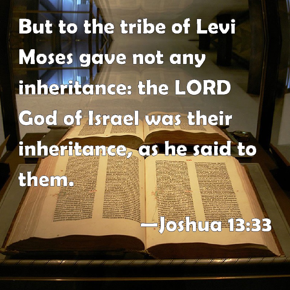 Choose a Background Joshua 13:33 But to the tribe of Levi Moses gave not any inheritance: the LORD God of Israel was their inheritance, as he said to them. KJV: But unto the tribe of Levi Moses gave not any inheritance: the LORD God of Israel was their inheritance, as he said unto them. DRB: But to the tribe of Levi he gave no possession: because the Lord the God of Israel himself is their possession, as he spoke to them. DBT: But to the tribe of Levi Moses gave no inheritance: Jehovah the God of Israel is their inheritance, as he said to them. ERV: But unto the tribe of Levi Moses gave none inheritance: the LORD, the God of Israel, is their inheritance, as he spake unto them. WBT: But to the tribe of Levi Moses gave not any inheritance: the LORD God of Israel was their inheritance, as he said to them. WEB: But to the tribe of Levi Moses gave no inheritance. Yahweh, the God of Israel, is their inheritance, as he spoke to them. YLT: and to the tribe of Levi Moses gave not an inheritance; Jehovah, God of Israel, Himself is their inheritance, as He hath spoken to them.Links Joshua 13:33 NIV • Joshua 13:33 NLT • Joshua 13:33 ESV • Joshua 13:33 NASB • Joshua 13:33 KJV • Joshua 13:33 Interlinear • Joshua 13:33 Commentaries • Joshua 13:33 Parallel Texts • Joshua 13:33 Bible Apps • Joshua 13:33 Parallel • Bible Hub |